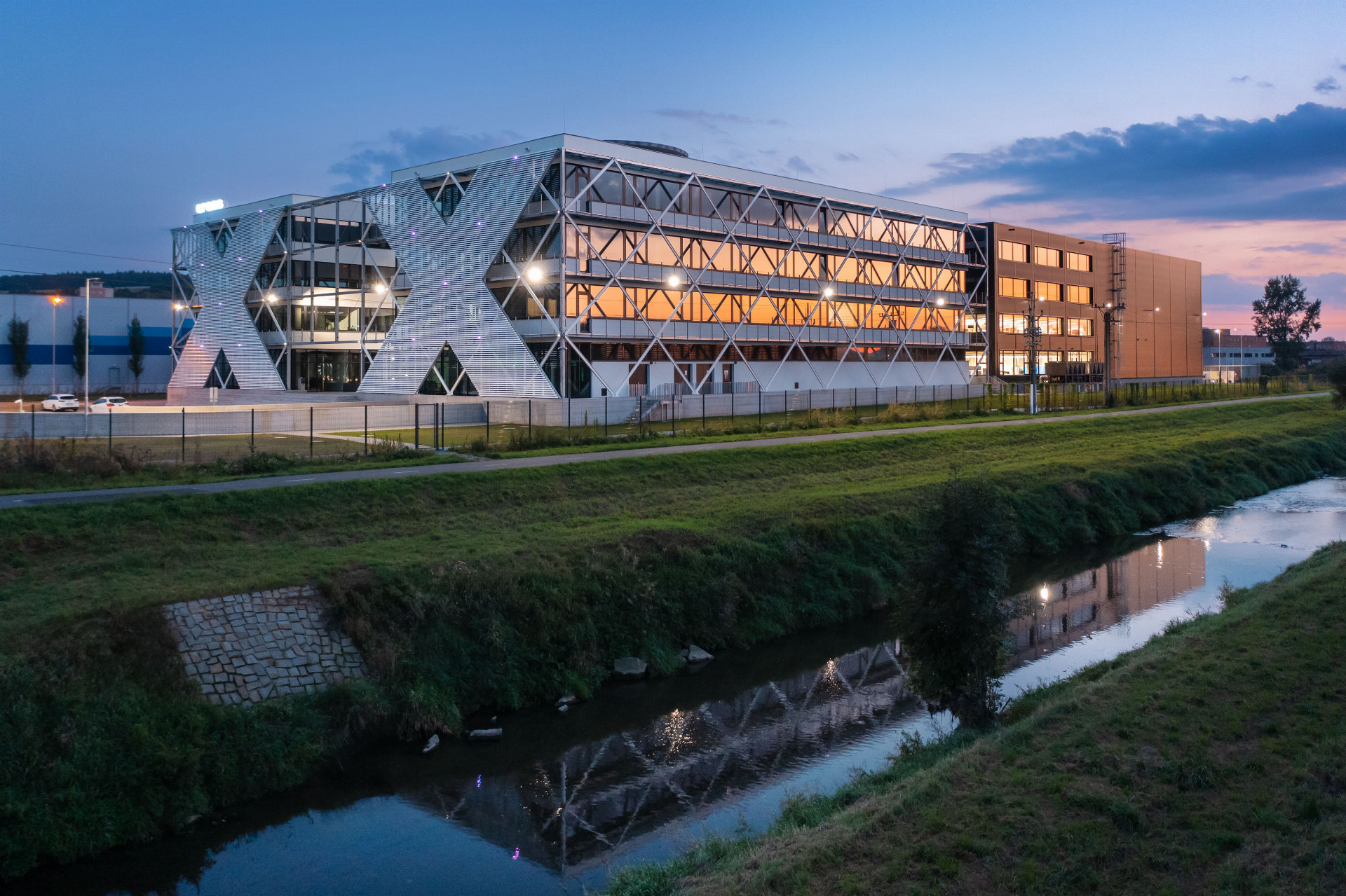 lamel ve tvaru X odkazuje na název společnosti a akcentuje jednu z jejich hlavních činností – řízení světelných křižovatek. Zajímavostí je také příprava tzv. vertiportu, plochy pro přistání a vzlet VTOL letadel. Tato řešení spolu s dalšími nadčasovými architektonickými prvky zrcadlí inovativní a futuristické vize společnosti.